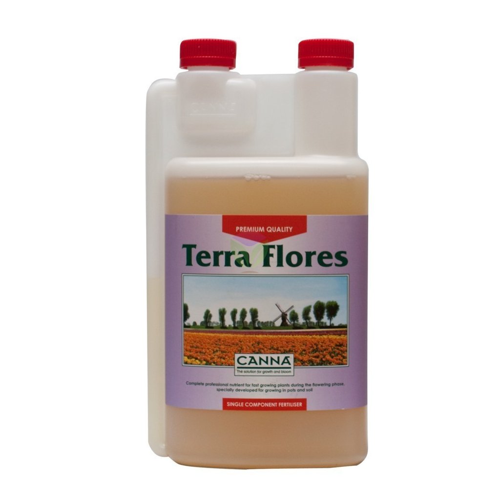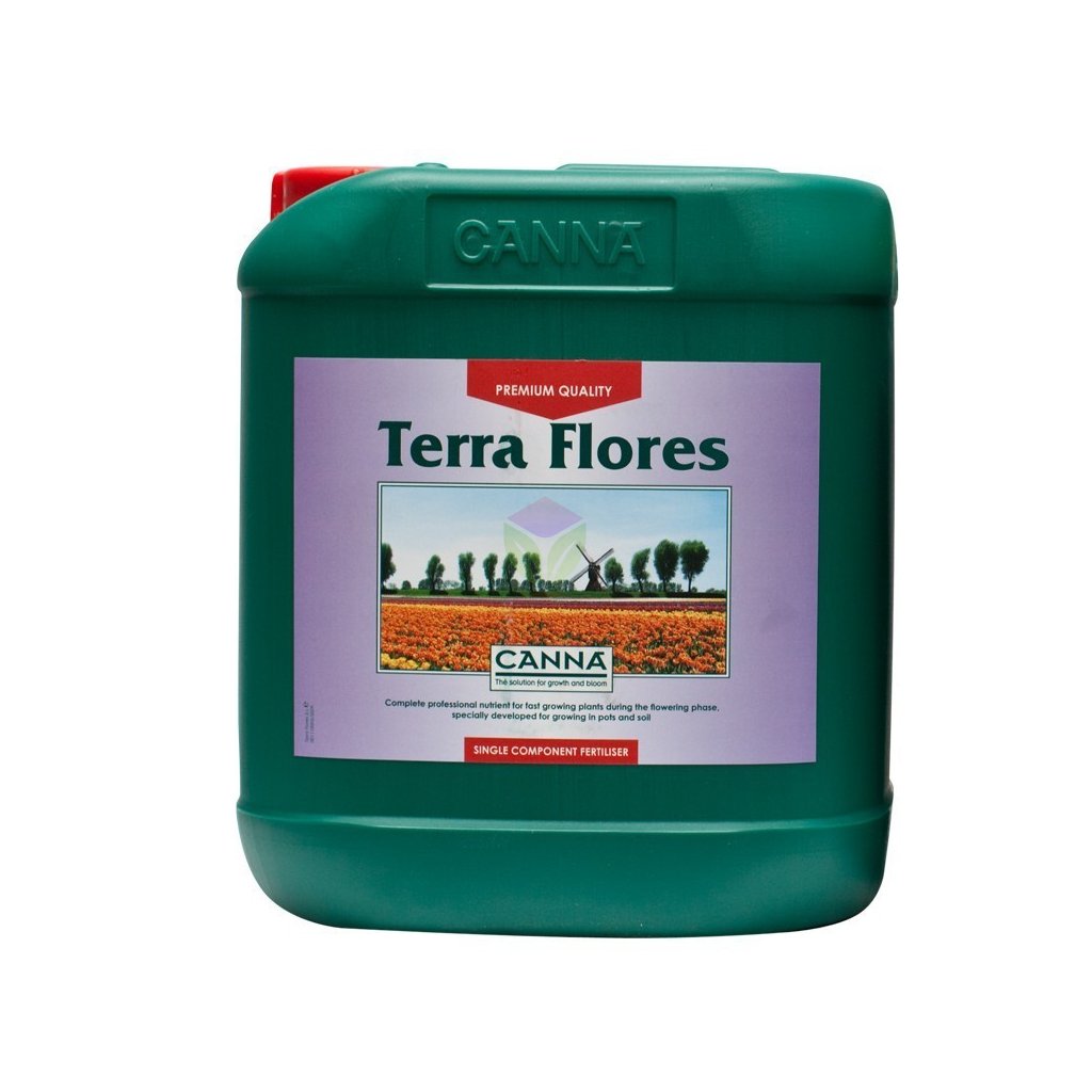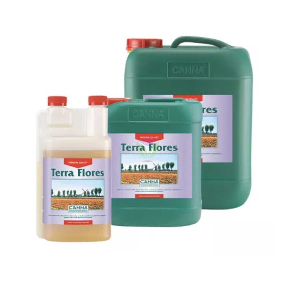 Canna TERRA Flores je kompletní jednosložkové hnojivo pro květovou fázi. Po změně fotoperiody nahrazuje hnojivo TERRA Vega. Obsahuje ideální poměr draslíku a fosforu pro splnění potřeb rostlin během květové fáze. Podporuje tvorbu květů a rozvoj charakteristické vůně a chuti. Terra Flores je hnojivo bohaté na cheláty stopových prvků. Tato forma živin může být okamžitě absorbována pomocí kořenů, což garantuje tvorbu bohatých květů a plodů.