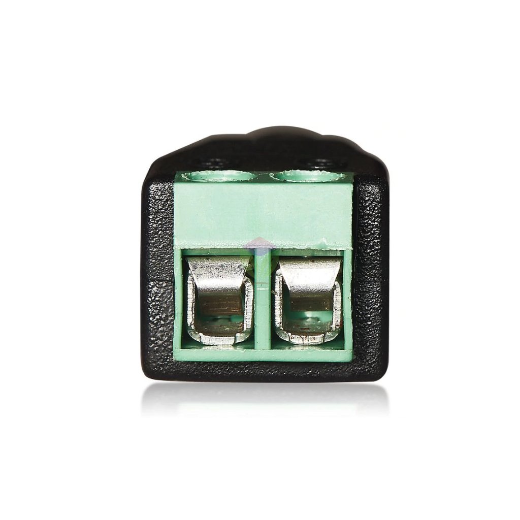 Zásuvka napájecí se svorkovnicí 2,1 x 5,5 mm. Maximální zatížení je 5A, maximální pracovní napětí je 50V=/~.