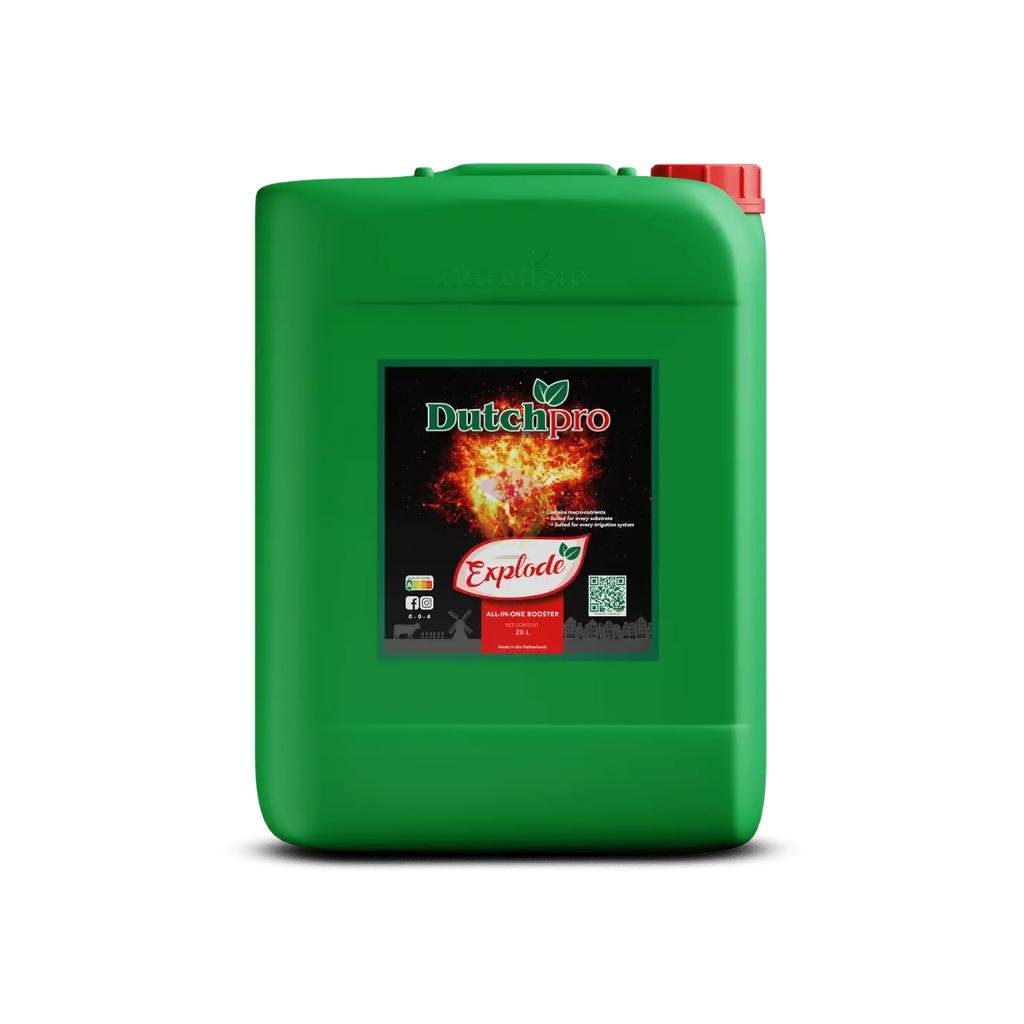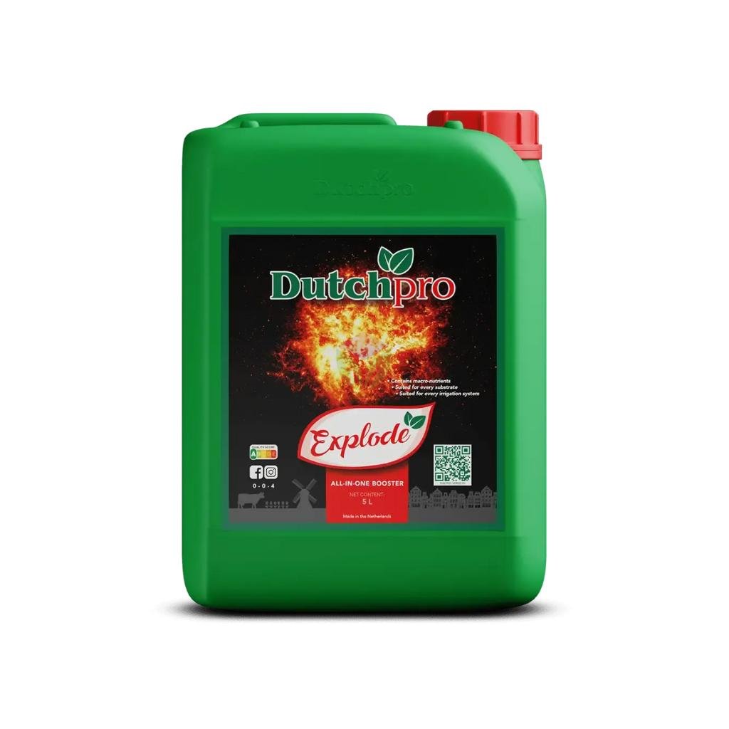 DutchPro Explode je navržený jako výkonný booster pro maximalizaci výnosů. Podporuje efektivní transport živin, zvyšuje tvorbu cukrů, stimuluje fotosyntézu a posiluje odolnost rostlin proti houbovým a bakteriálním chorobám.