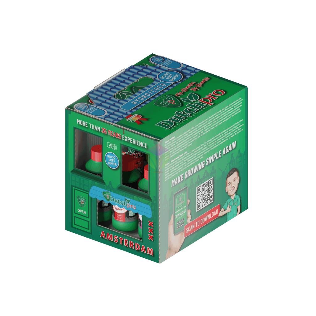 DutchPro Startovací sada Hydro/Coco Soft Water obsahuje vše, co potřebujete pro úspěšný start pěstování v hydroponii nebo kokosovém substrátu. Balíček zahrnuje kompletní sadu základních hnojiv a doplňků pro optimální růst a kvetení rostlin. Ideální pro malé pěstební projekty s jednoduchým dávkováním a maximální efektivitou.
