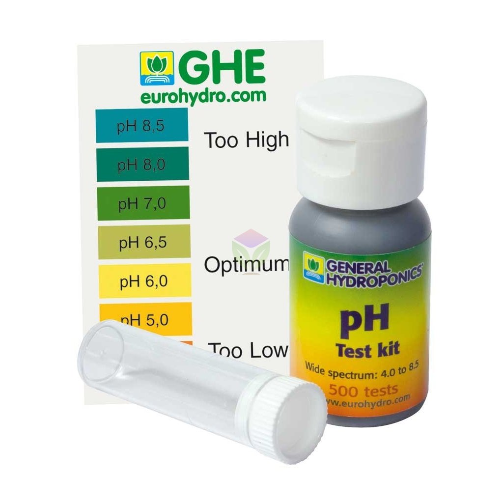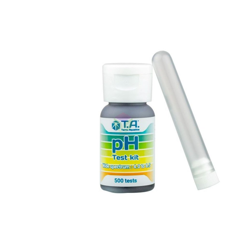 Velmi spolehlivý, jednoduchý na používání a levný. Testovací nádobku stačí do poloviny naplnit živným roztokem, přidejte 2 - 3 kapky pH testovacího ukazatele, protřepejte a pozorujte a porovnejte výsledné zbarvení.