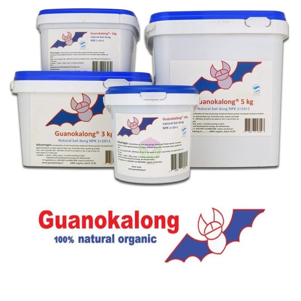 Guanokalong je zcela biologické hnojivo v peletizované formě, které je vhodné pro růstovou i květovou fázi rostliny. Používá se jako hnojivo do půdy a do půdních substrátů a využívá se jak v indoor tak i v outdoor pěstování. Guanokalong je čistě přírodní produkt, který se získává z netopýřích exkrementů pomocí procesu sušení. Neobsahuje klíčivá semena plevelů.