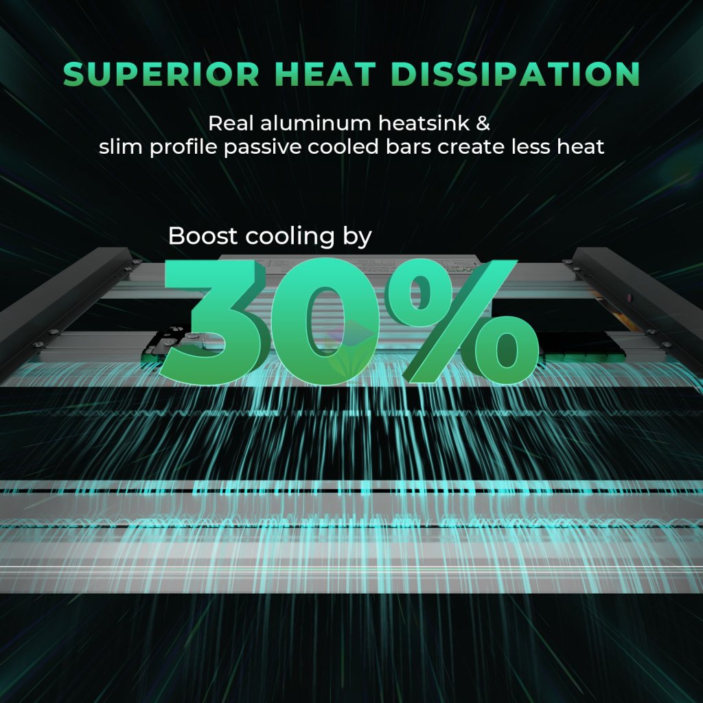 Mars Hydro FC-E3000 je hustě osazen čipy BridgeLux, které poskytují vysokou výslednou hodnotu až PPFD 1300umol/m²/s, což je více než ideální množství světla pro domácí pěstování na prostoru 100 x 100 cm. K plnému spektru světla je přidáno také UV a infračervené záření, které splňuje potřeby rostlin při pěstování na vyšší úrovni.