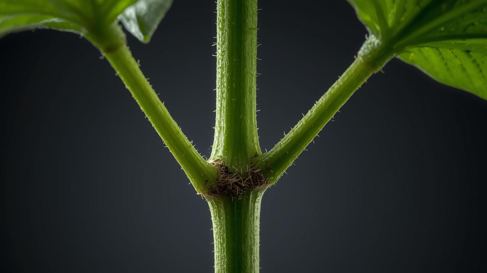 - Výběr větve a místa ohybu: Nejprve zvolte větev, kterou potřebujete ohnout. Ideálně vybírejte silnější a zdravé větve, které už nejsou úplně tenké jako špejle, ale zároveň ještě nejsou zdřevnatělé. Tloušťka zhruba jako tužka je dobré vodítko. Vyhněte se větvím, které jsou vyloženě dřevité, tvrdé – ty praskají nejčastěji. U velmi tuhých stonků pomůže vybrat místo ohybu tam, kde je stonek ještě zelený a ohebný (například těsně nad třetím nodem od vrcholu). Obecně platí, že nehýbeme úplně spodními „zdřevnatělými“ částmi kmene, ale spíše vrchními částmi větví, které jsou mladší. Místo ohybu by mělo být několik cm pod vrcholem dané větve – doporučuje se, aby nad zvoleným místem zůstaly alespoň 3–4 listové uzliny (patra), takže ohnutá část stále ponese dostatek listů a výhonků. Neohýbejte větev těsně u hlavního kmene (hrozí její odtržení od kmene), ani příliš blízko vrcholku (tam je stonek tenký a nemá smysl jej lámat). Ideální “crop point” je zhruba v první třetině délky větve (počítáno od vrcholku větve dolů).