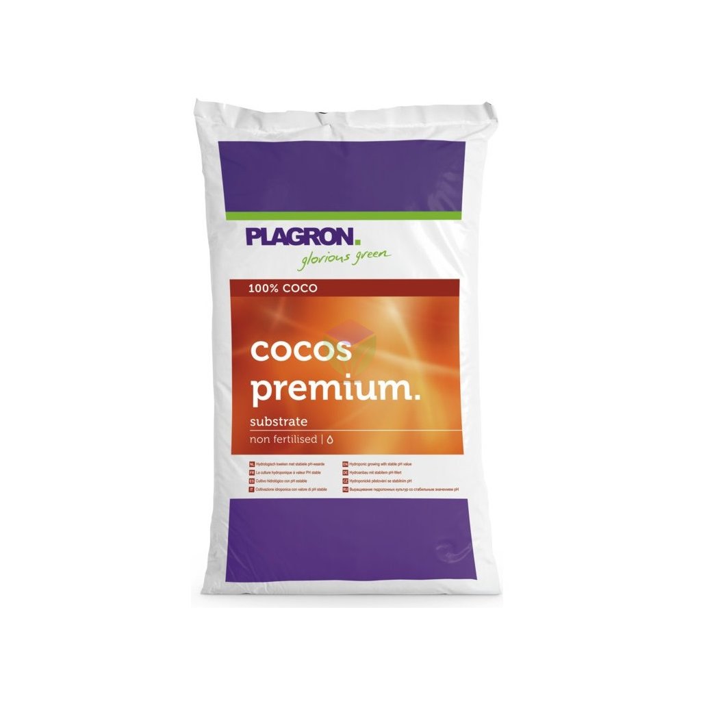 Plagron Cocos Premium - pufrovaný kokosový substrát, vhodný pro rychle rostoucí rostliny, obsahuje Trichodermu, neobsahuje žádná hnojiva, nositel známky RHP kvality. Obsah 50 l