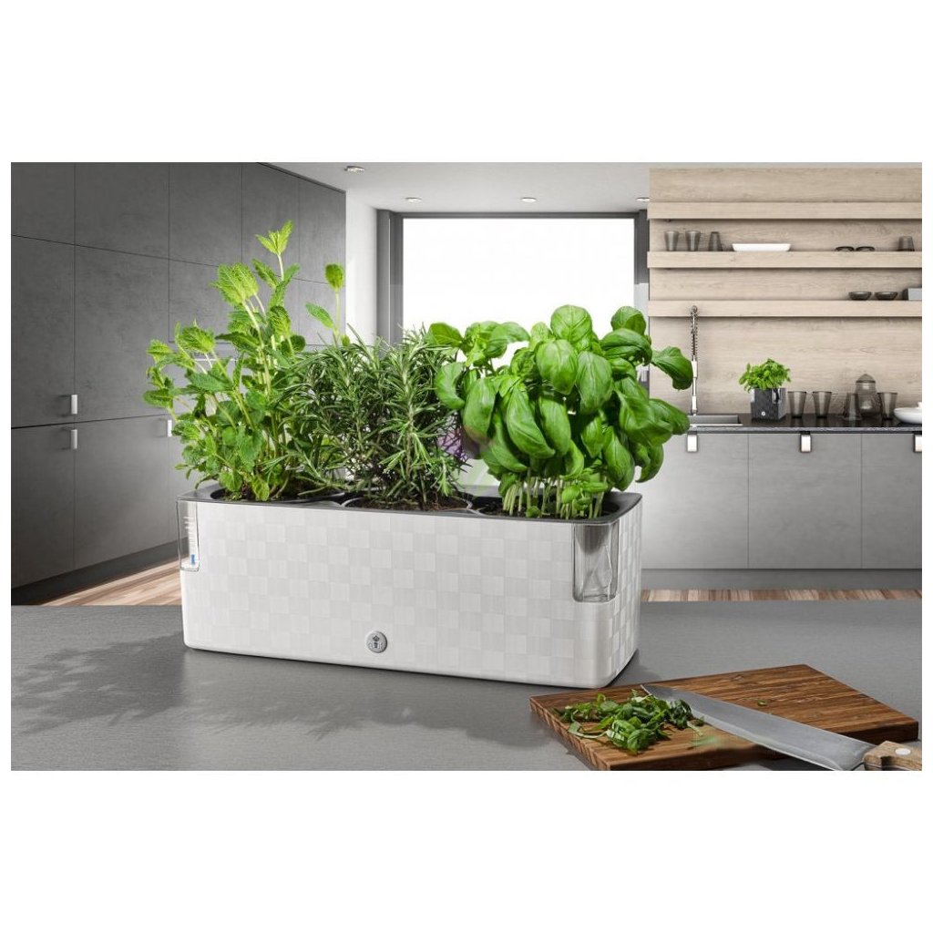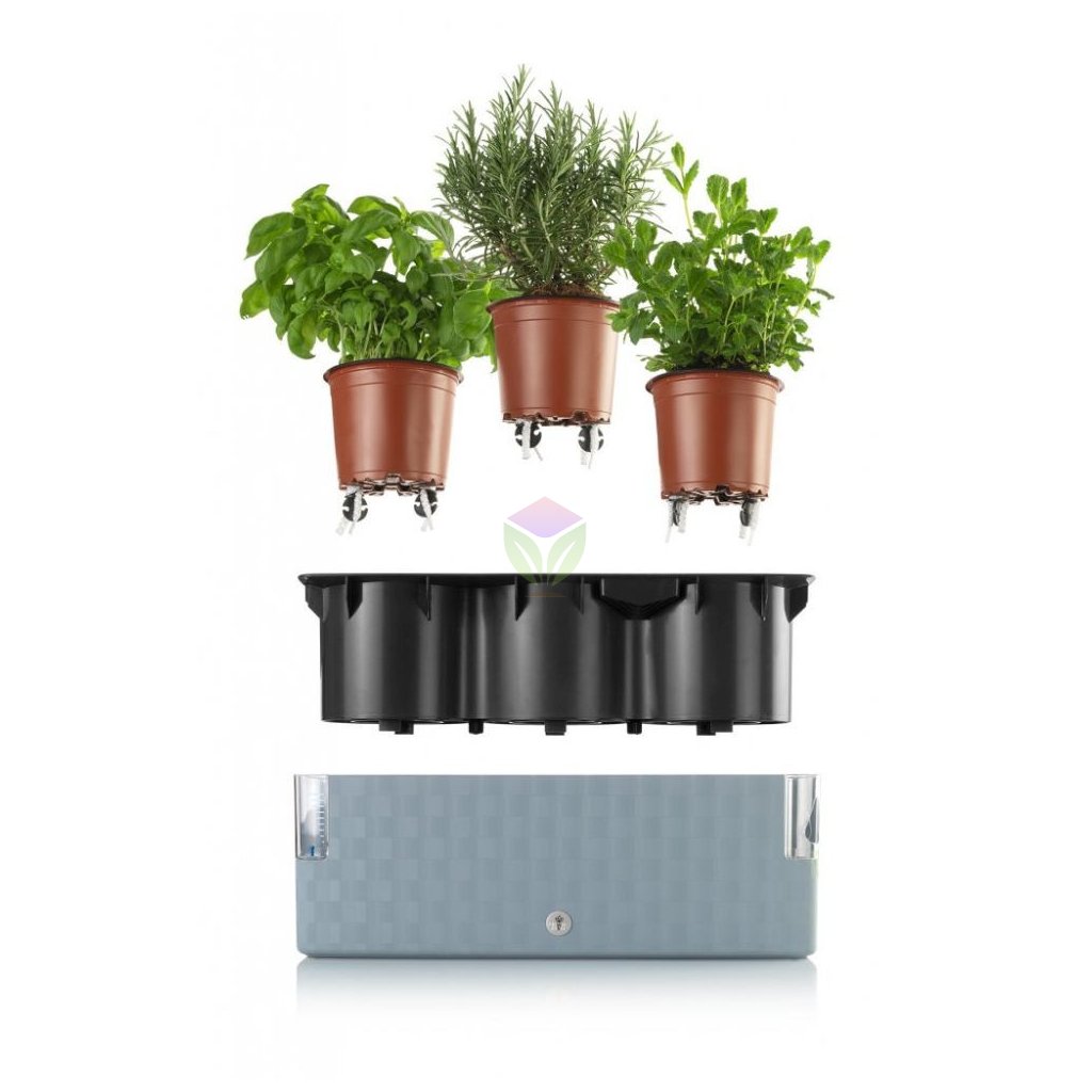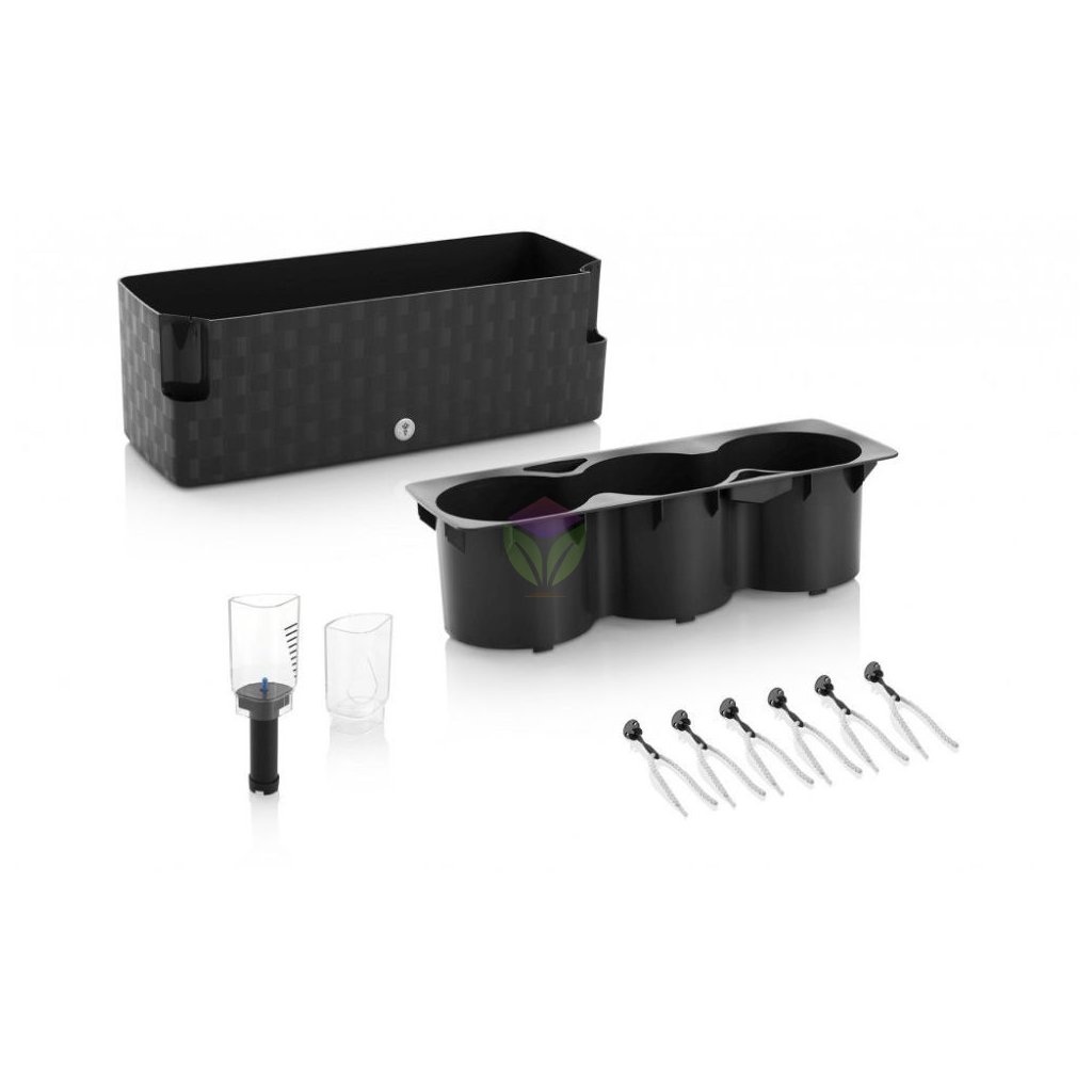 Plastkon Cobble Trio zahrnuje tři chytré květináče s knotovým zavlažováním, které se hodí pro domácí pěstování bylinek a květin. Hodí se na parapet, balkón, terasu. Rozměry 39.7x14x14 cm.