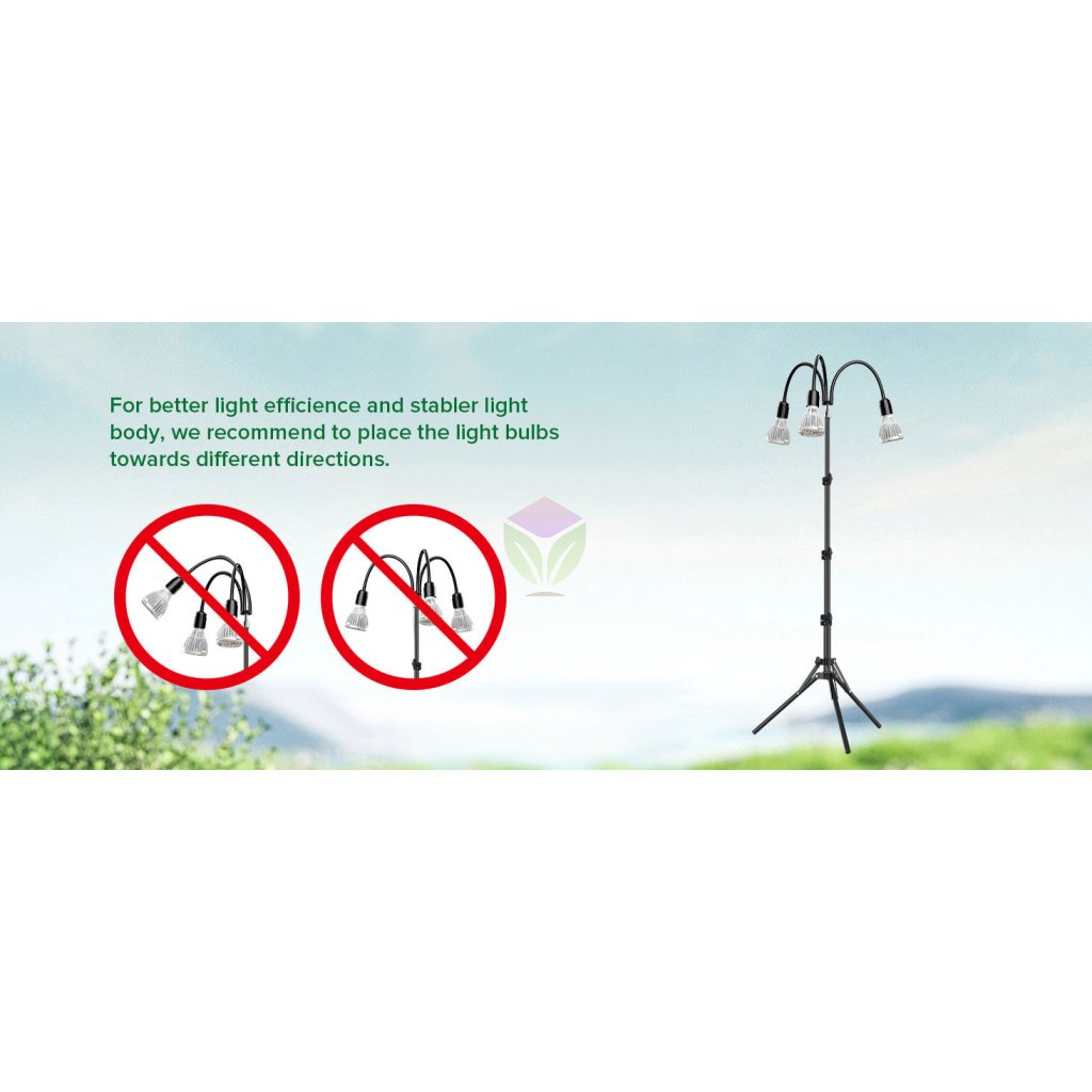 Nastavitelný stativ: Výška stativu je nastavitelná od 48 cm do 140 cm, což umožňuje přizpůsobit osvětlení jak malým pokojovým rostlinám, tak i vysokým rostlinám či stromkům.