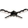 - Vhodné i pro větší pěstební boxy. Díky nastavitelným ramenům lze umístit čtyři žárovky - do každého rohu jednu. Dvě ramena namířit na střed a dvě ramena nechat svítit svisle dolu. Osvítíte tak i grow-box o rozměru 150 x 150 cm.