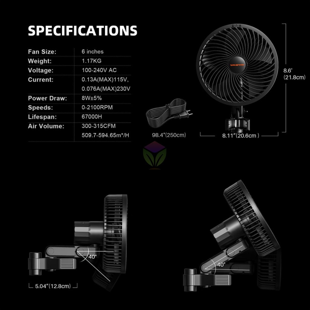 Představujeme nový klipový ventilátor od výrobce Spider Farmer pro pěstební stany, navržený pro optimalizaci růstových podmínek vašich rostlin. Tento ventilátor napodobuje přirozený vánek, což posiluje stonky rostlin a podporuje jejich zdravý vývoj. Zajišťuje správnou cirkulaci vzduchu v pěstebním prostoru.