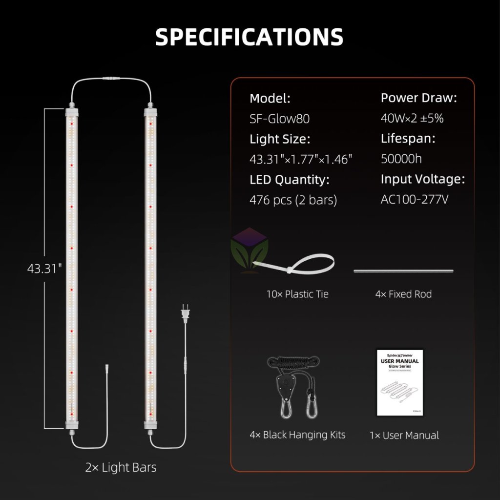 Spider Farmer Glow80 - 2x 40W lineární LED osvětlení