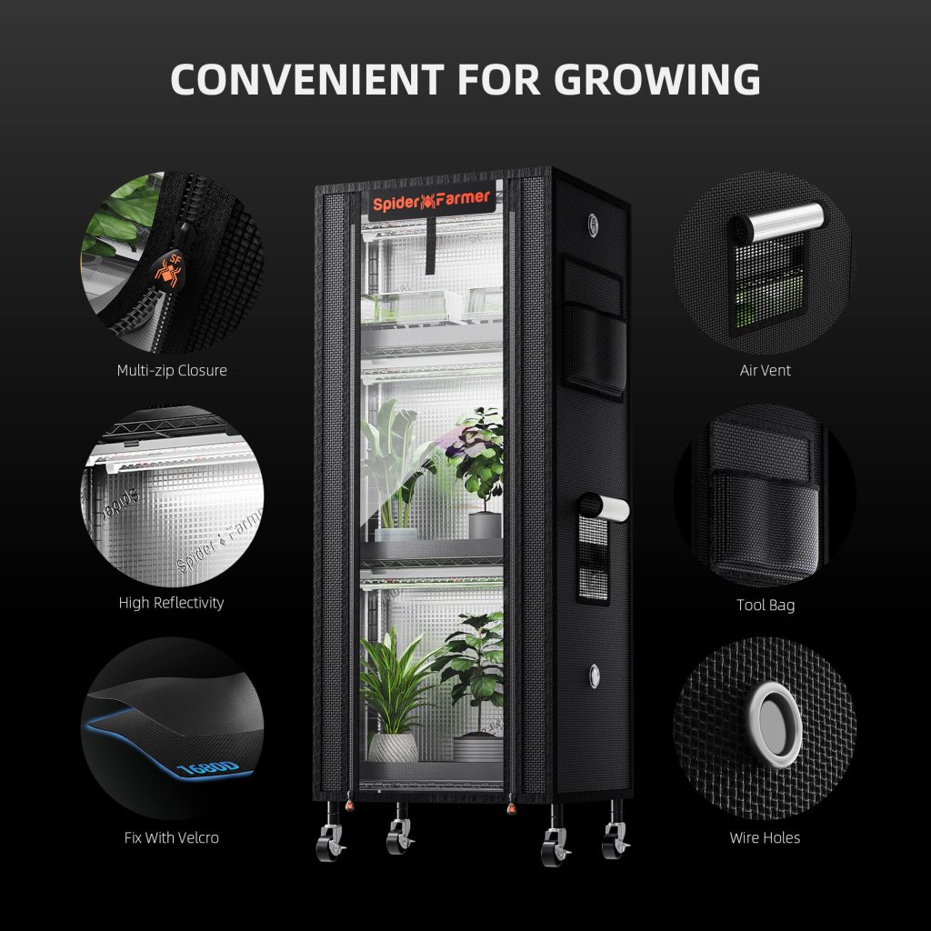 Vytvořte si kompaktní a efektivní domácí zahradnické prostředí s tímto inovativním setem od Spider Farmer, který podporuje zdravý růst vašich rostlin v každém ročním období.