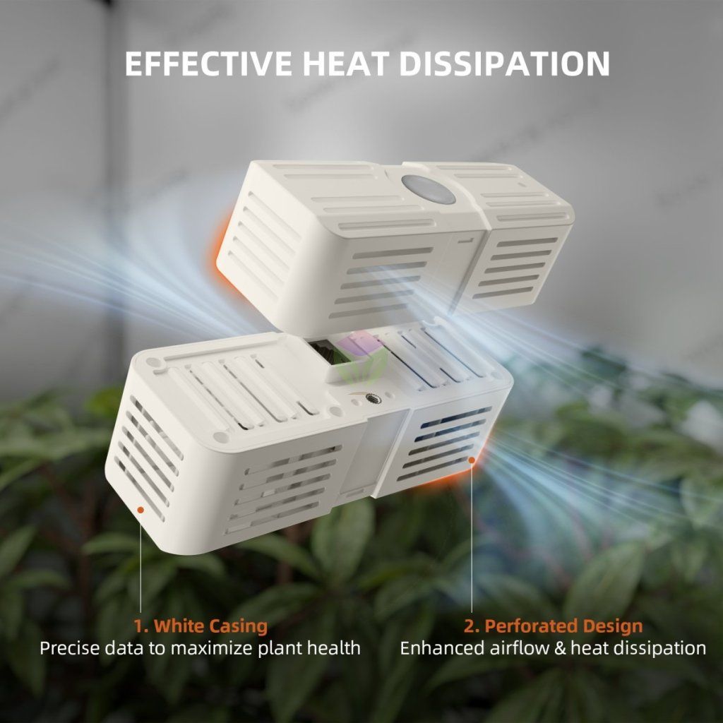 Díky přesnému a stabilnímu měření poskytuje senzor spolehlivá data v reálném čase. Bílý kryt snižuje absorpci tepla a minimalizuje teplotní zkreslení měření, zatímco odvětraná konstrukce zlepšuje proudění vzduchu a odvod tepla. Tím se data více přibližují reálným podmínkám, ve kterých rostliny skutečně rostou.