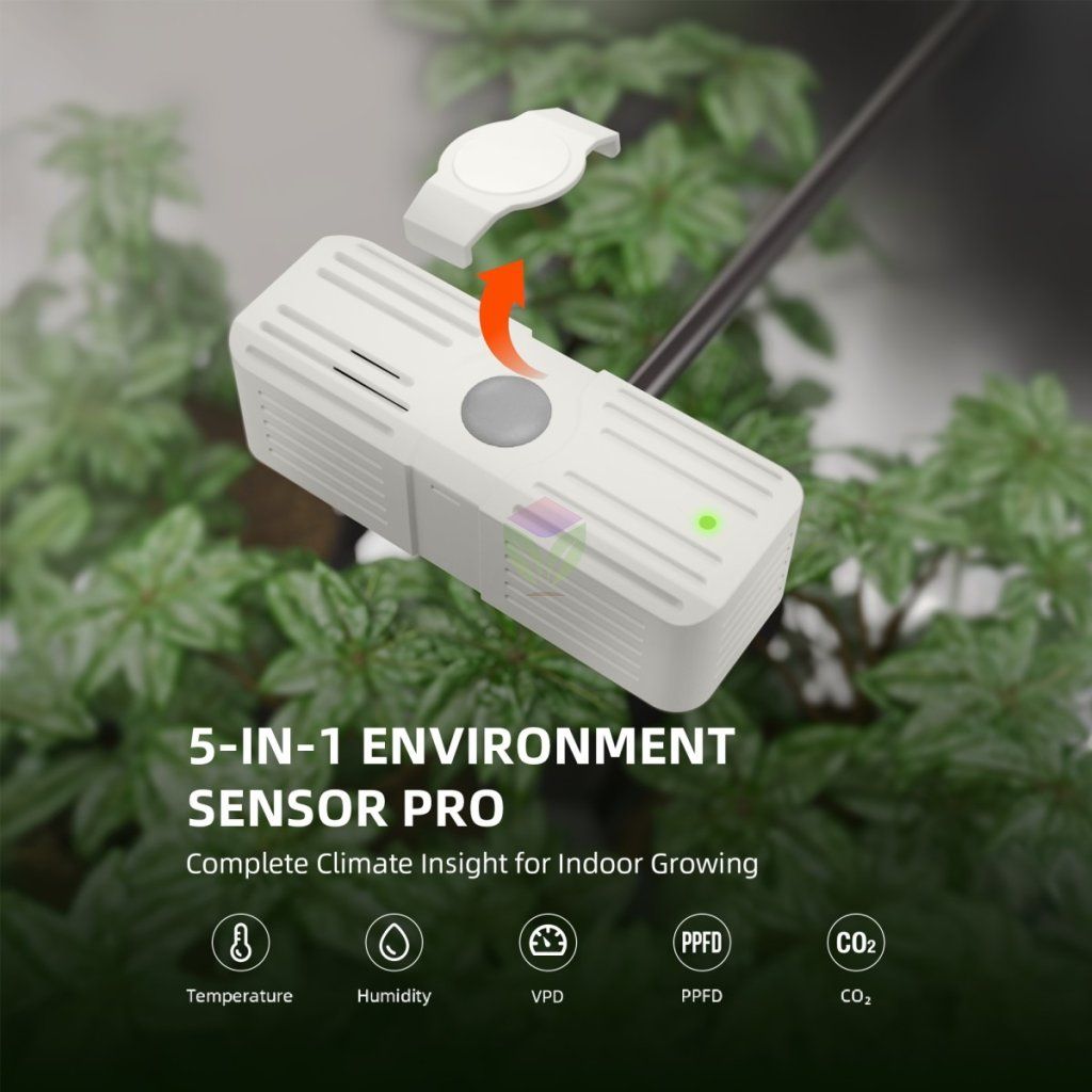 Spider Farmer SensorPro 5v1 je profesionální sada senzorů určená pro pěstitele, kteří chtějí mít plnou kontrolu nad podmínkami pěstebního prostředí. Tento systém monitoruje pět klíčových parametrů – teplotu, vlhkost, CO2, VPD a PPFD – a poskytuje tak komplexní přehled o prostředí pro maximální optimalizaci růstu rostlin a jejich vitality.