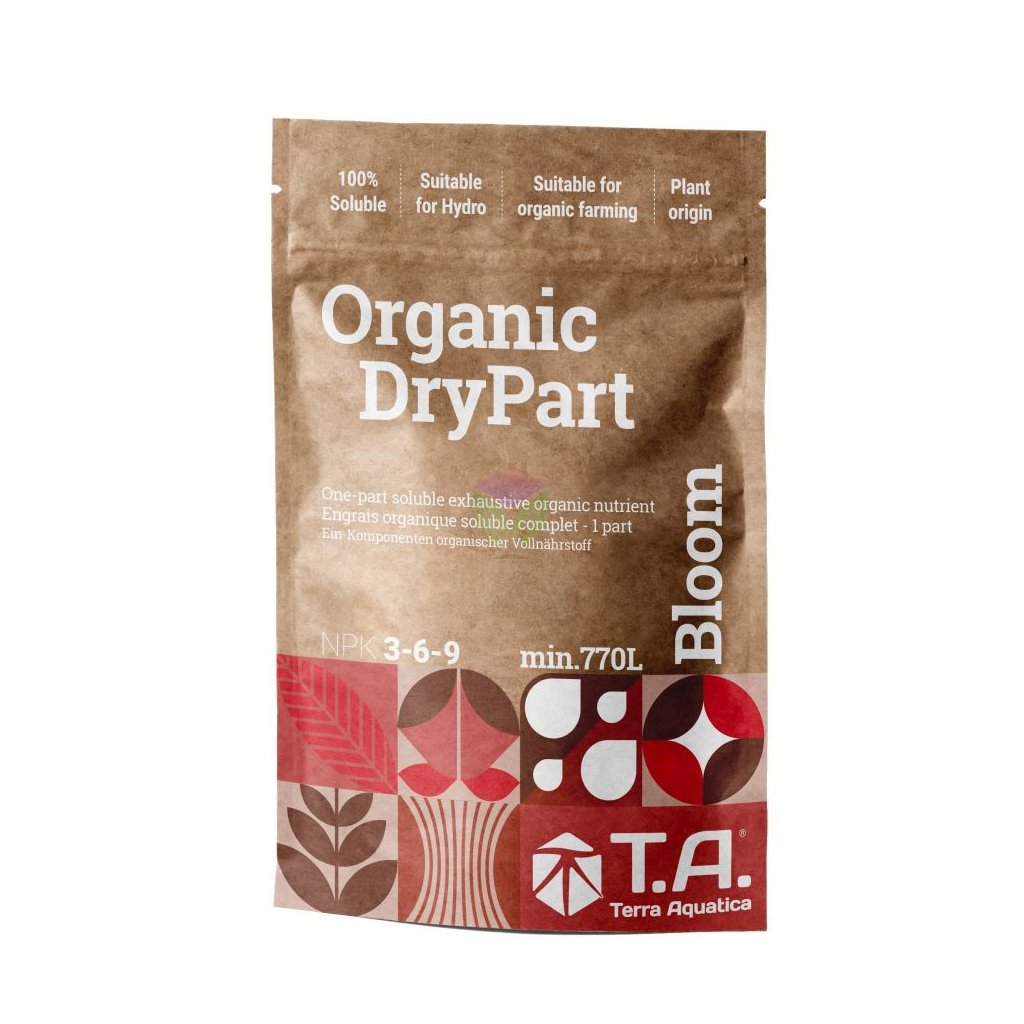 Organic DryPart® (Grow & Bloom) je kompletní, 100% rozpustné, veganské práškové hnojivo. První plně rozpustné organické práškové hnojivo, které lze používat v ekologickém zemědělství v souladu s nařízeními (EU) č. 2018/848 a 2021/1165.