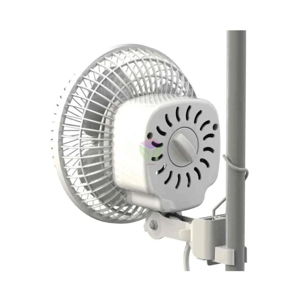 Díky speciálnímu klipsnovému uchycení pevně drží na konstrukci pěstebních stanů a nesklouzává ani při provozu. Ventilátor je kompatibilní s tyčemi o průměru přibližně 16–21 mm a umožňuje snadnou instalaci bez použití nářadí.