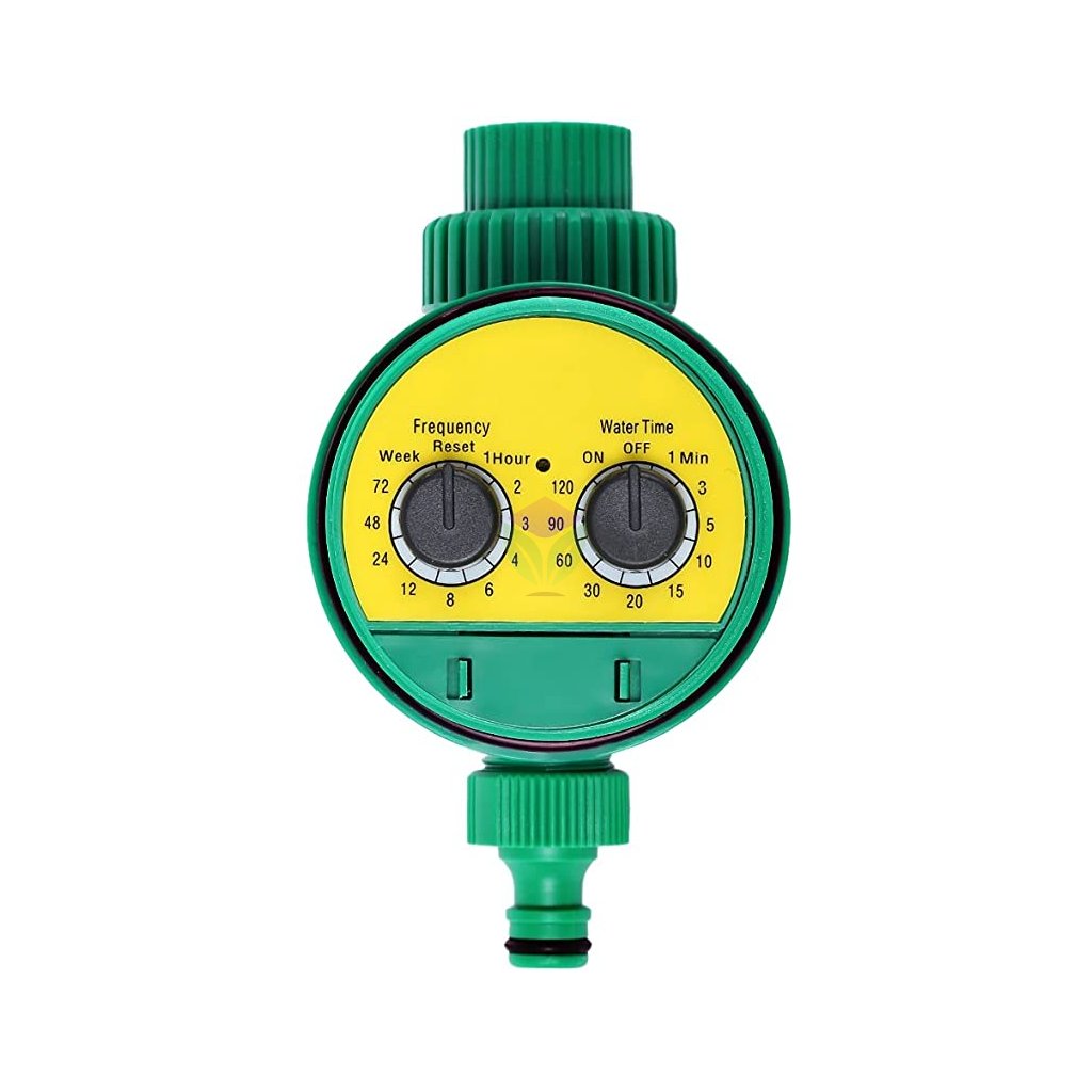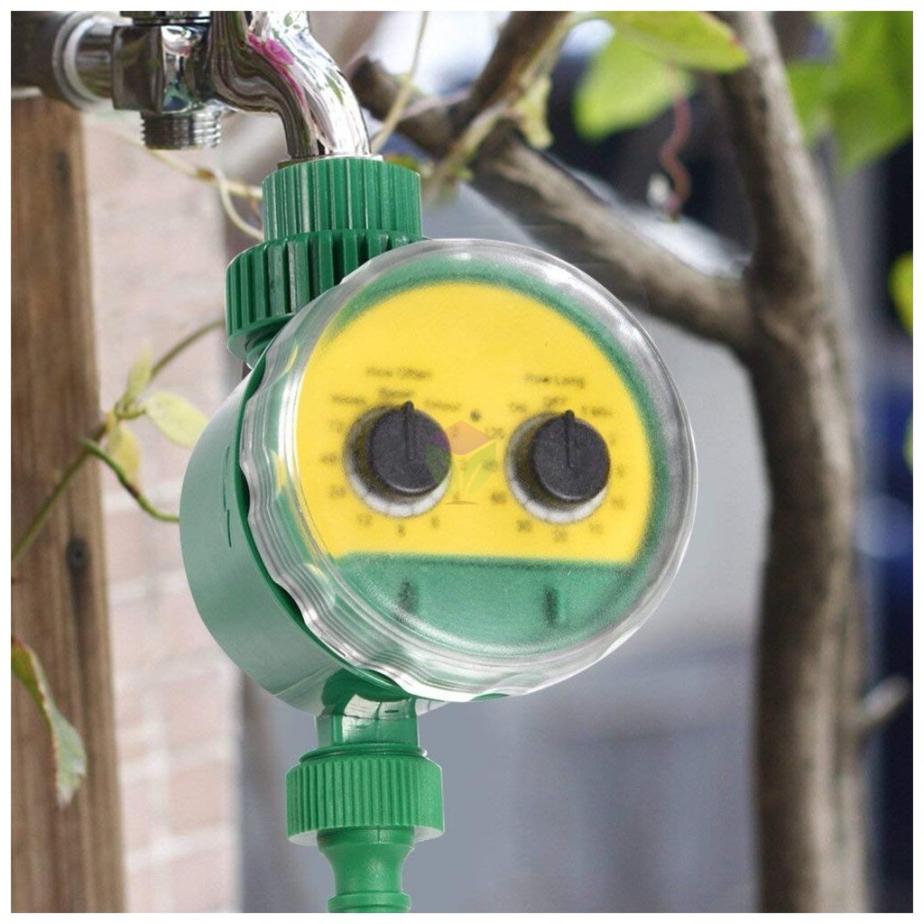 Water Timer lze použít s připojením na kohout nebo gravitační nádrž (pracovní tlak od 1 do 7,5 bar). Časovač je vybaven dvěma regulátory, jedním pro délku zavlažování a druhým pro frekvenci zavlažování. Je odolný vůči povětrnostním vlivům, automaticky se vypne při nízké úrovni baterie.