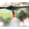 Upevnění trysek se provádí velmi jednoduchým úkonem. Hadici pouze v místě, kam chcete umístit trysku přeříznete/rozstřihnete. Mezi tyto dva nové konce vložíte trysku. Nastavíte směr, kterým bude tryska kropit a utáhnete plastovým závitem ať pořádně těsní. Takto budete pokračovat po celé délce hadice. Žádné další nástroje k tomu nejsou potřeba. |