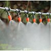 | Tato kapilární závlaha zvlhčuje rovnoměrně záhon mikroskopickými kapkami, což je nejefektivnější a nejpřirozenější způsob zalévání zeleně. Velikost kapek můžete ovlivnit utažením, či povolením samotné trysky. Pokud chcete zalévat formou vlhkosti, tak utáhněte trysku a nechte rostliny pouze mlžit. Jestli-že potřebujete simulovat silný déšť tak trysku povolte a nechte na listy dopadat velké kapky. Jednou systém nastavíte a pak už se o nic nestaráte. | ![]() |