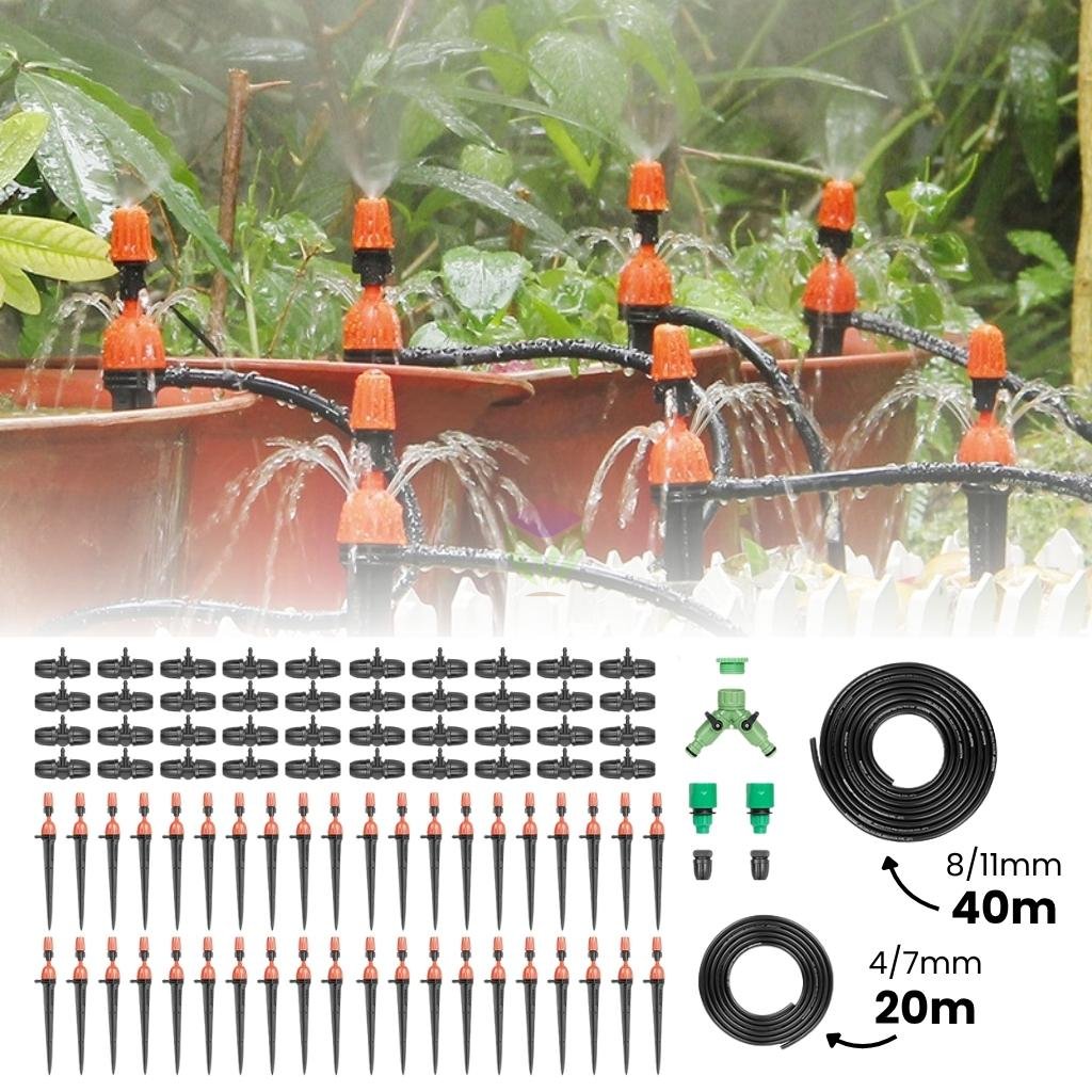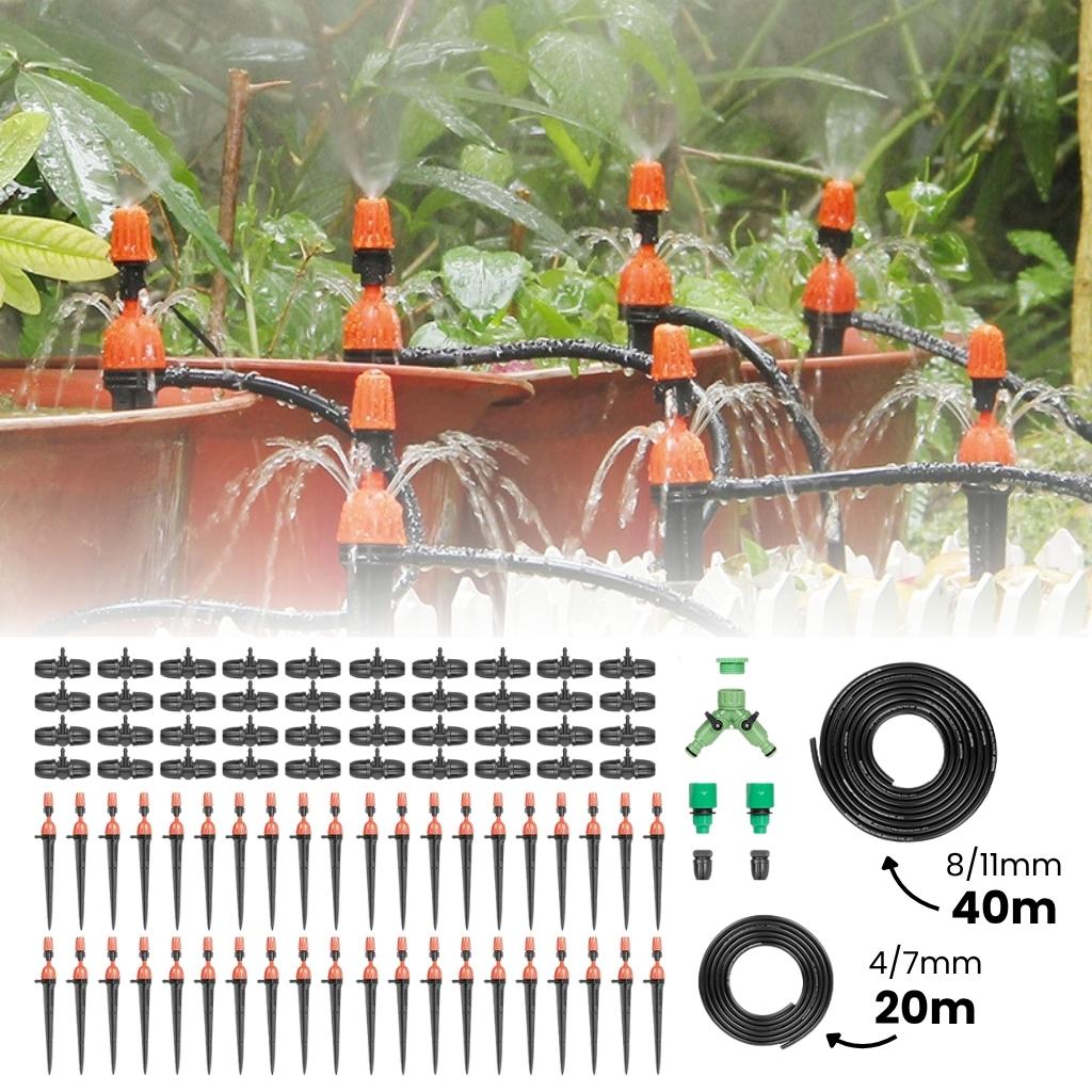 Zavlažovací systém pro záhony, květináče nebo lokální části trávníku Vám ulehčí práci na zahradě a ušetří čas. Kupujete kompletní zavlažovací systém pro okamžité použití. Produkt kombinuje kapkovou závlahu s jemným ostřikováním okolního prostředí. Součástí sady je hadice s průměrem 8/11mm a kapilára s průměrem 4/7mm. Jak názvy součástí napovídají jedná se o kapilární závlahu, kterou si můžete díky nastavitelné trysce přizpůsobit vašemu záměru.